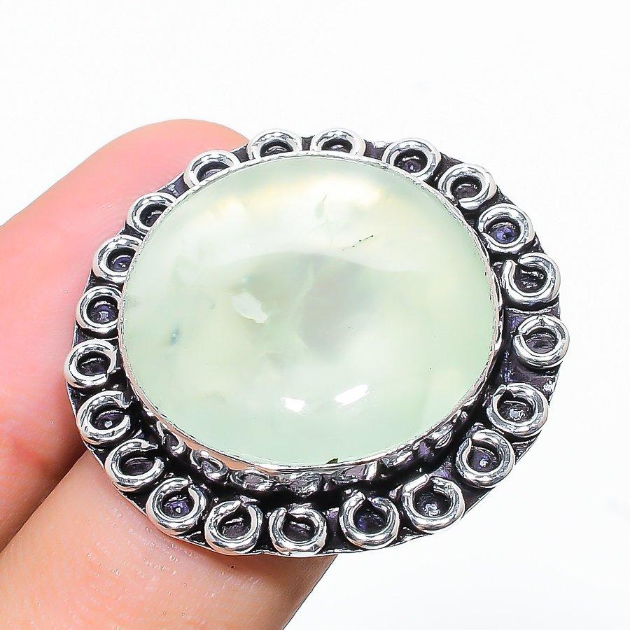 Natural Prehnite Gemstone Handmade 925 Sterling Silver Ring Size 7.5 AR-7813