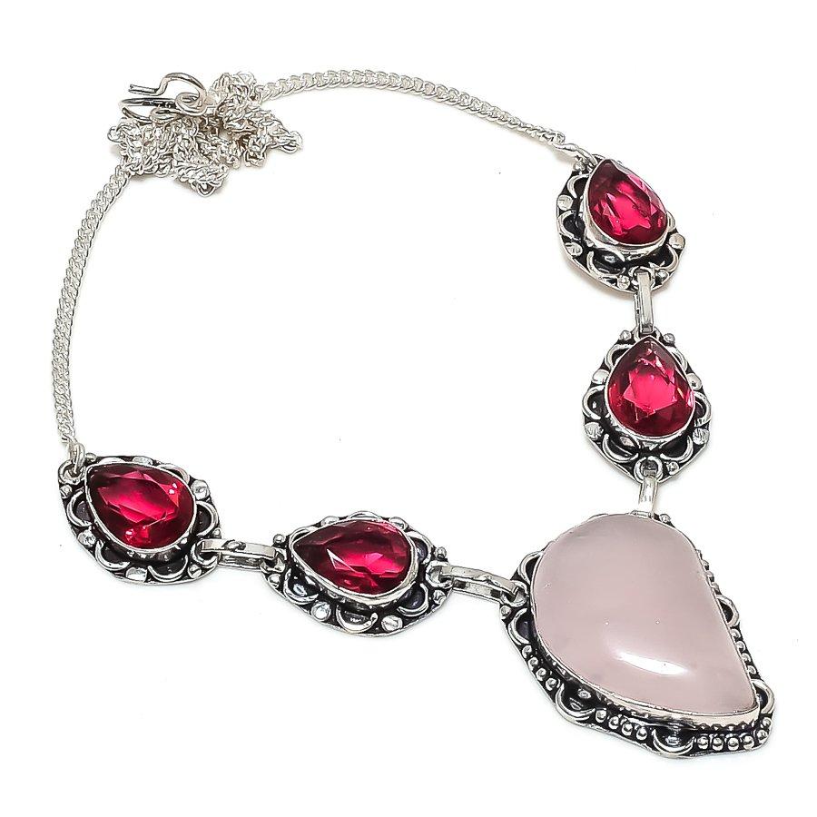 Natural Rose Quartz, Rubillite 925 Sterling Silver Jewelry Necklace 18" ASN-5844