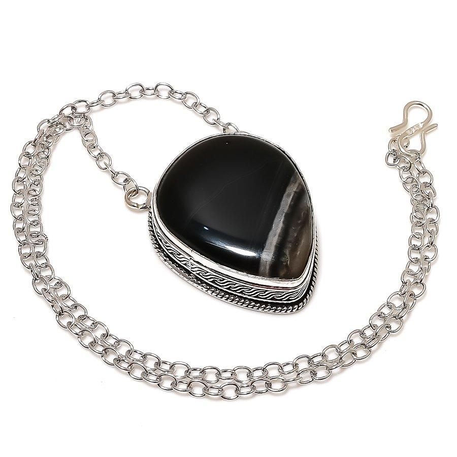 Natural Banded Agate Gemstone Handmade 925 Sterling Silver Necklace 20" ASN-276