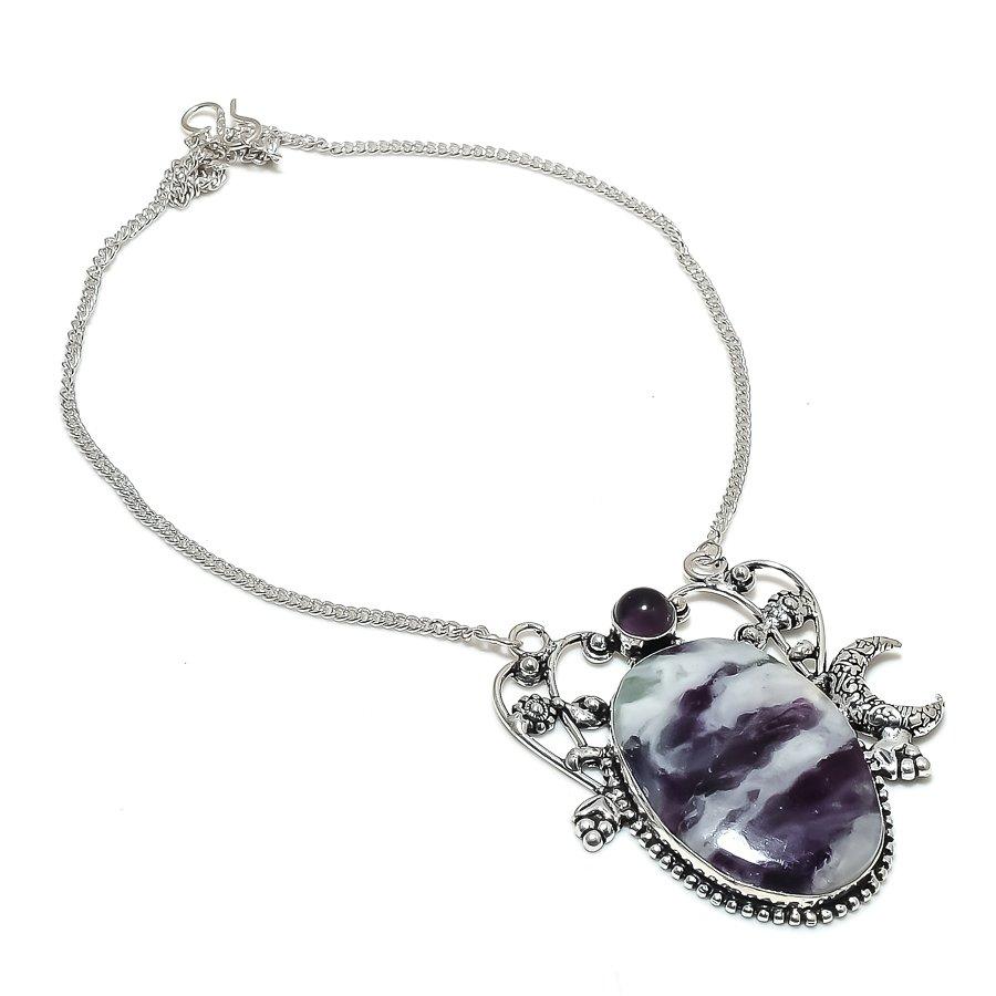 Natural Russian Charoite, Amethyst 925 Sterling Silver Jewelry Necklace 18" ASN-5543