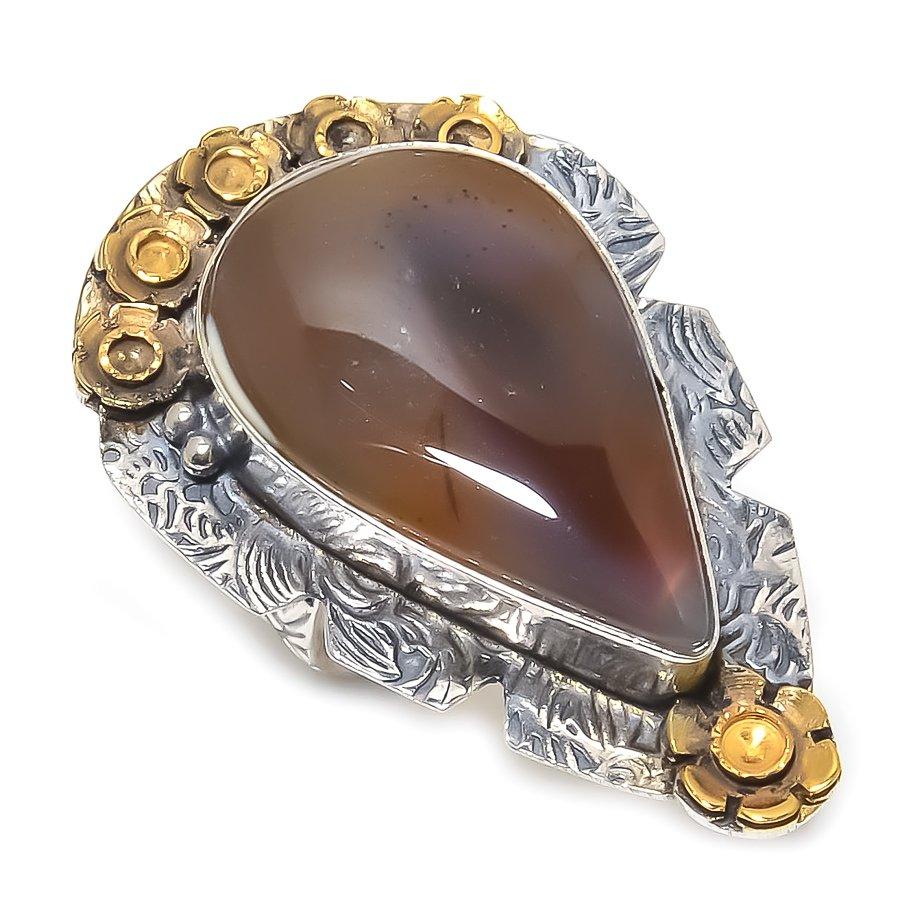 Natural Botswana Agate Gemstone 925 Sterling Silver Two Tone Ring Size 7 STT-2164