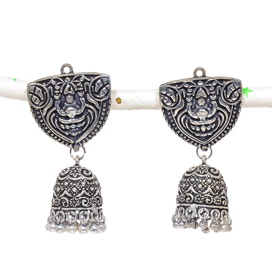 Natural Indian Look Jhumki Gemstone Silver Tribal Bali Earring 1.97" SE-9518