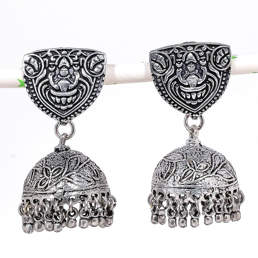 Natural Indian Look Jhumki Gemstone Silver Tribal Bali Earring 2.17" SE-9073