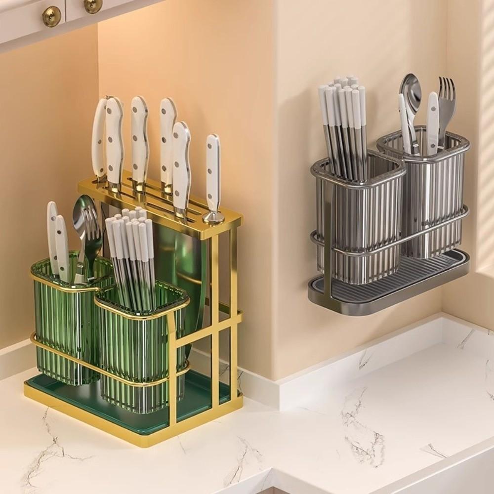 Mildew-Proof Kitchen Storage Rack Wall Mounted Cutlery Organizer Drain Rack Kitchen Countertop