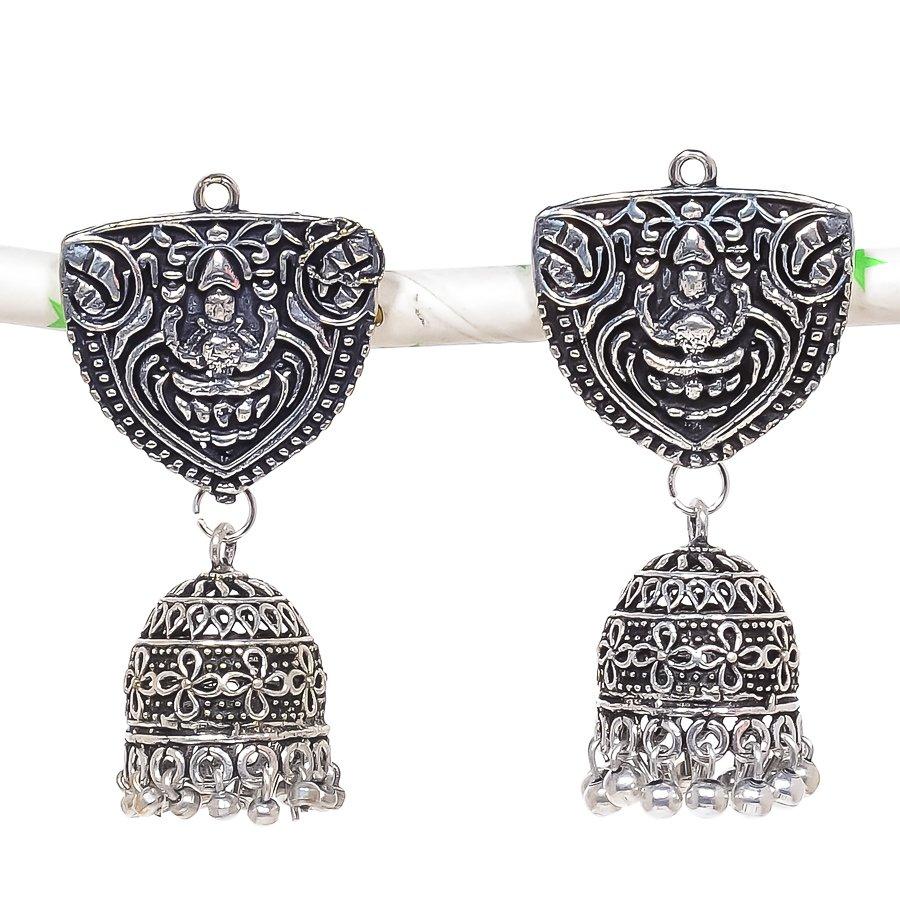 Natural Indian Look Jhumki Gemstone Silver Tribal Bali Earring 2.09" SE-9678