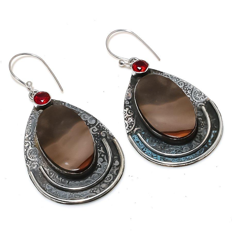 Natural Mookaite, Garnet Gemstone 925 Sterling Silver Earring 2.48" ME-675