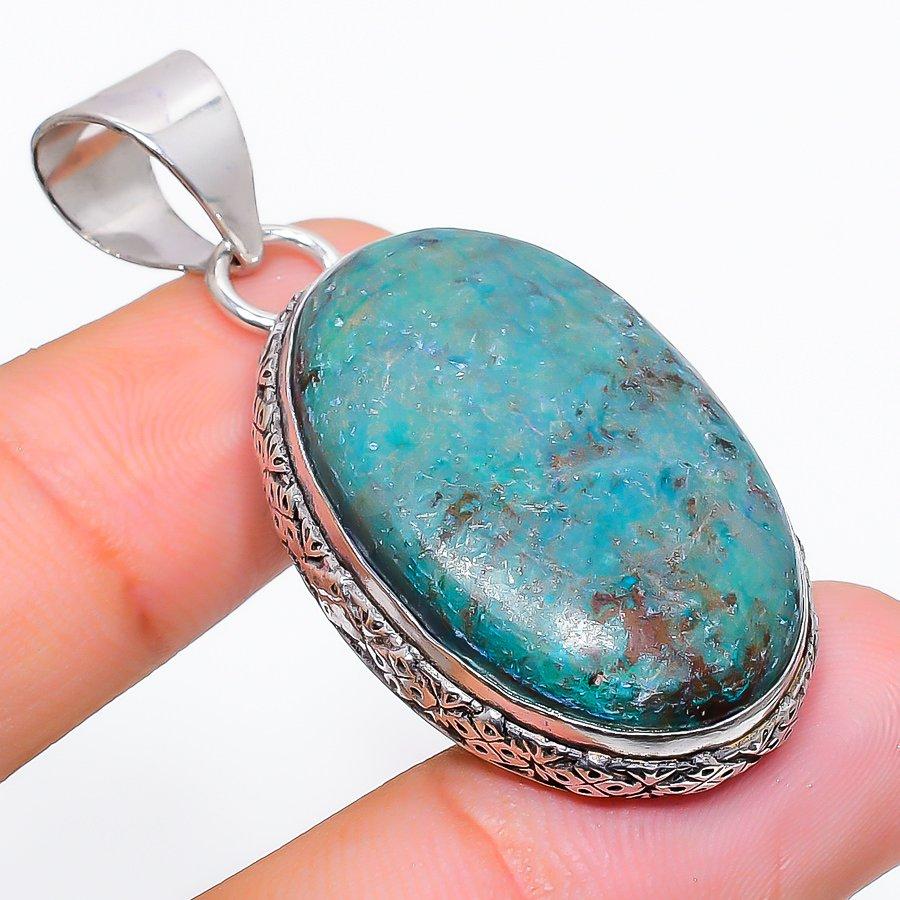 Natural Chrysocolla Gemstone Handmade 925 Sterling Silver Pendant 1.89" SP-23036
