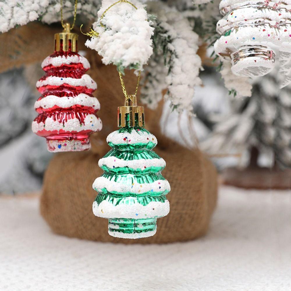 6pcs/box Plastic Painted Cedar Christmas Tree Ornament Colorful Xmas Hanging Ornament DIY Crafts
