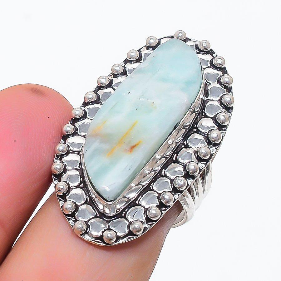 Natural Amazonite Gemstone 925 Sterling Silver Jewelry Ring Size 7.5 AR-15115