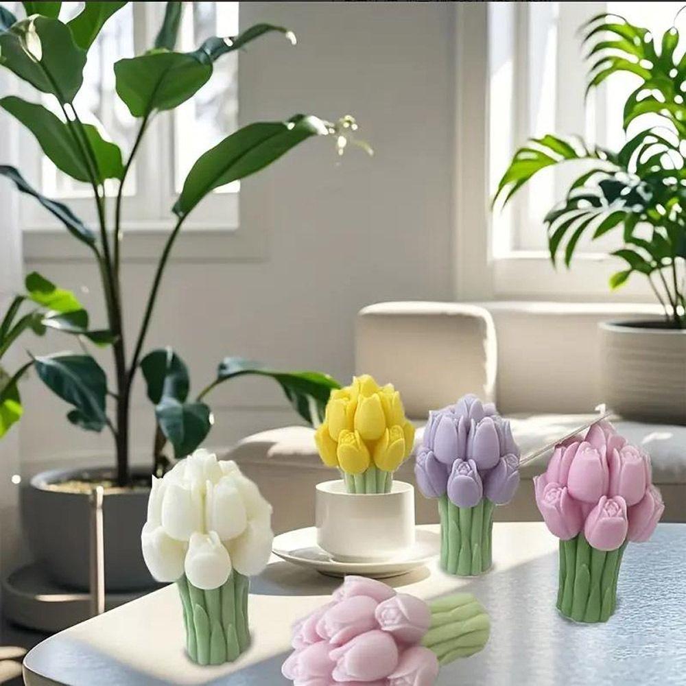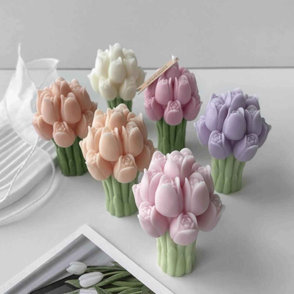 Flexible Silicone Tulip Bouquet Candle Molds DIY Handmade Soap Making Mold Kitchen Cooking