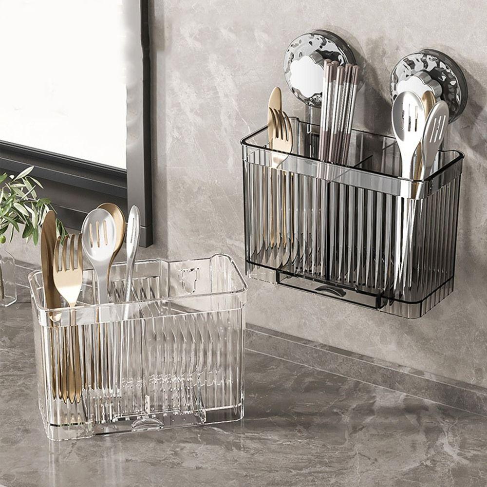 Wall Mounted Suction Cup Chopstick Holder Reusable Chopsticks Spoon Organizer Bathroom