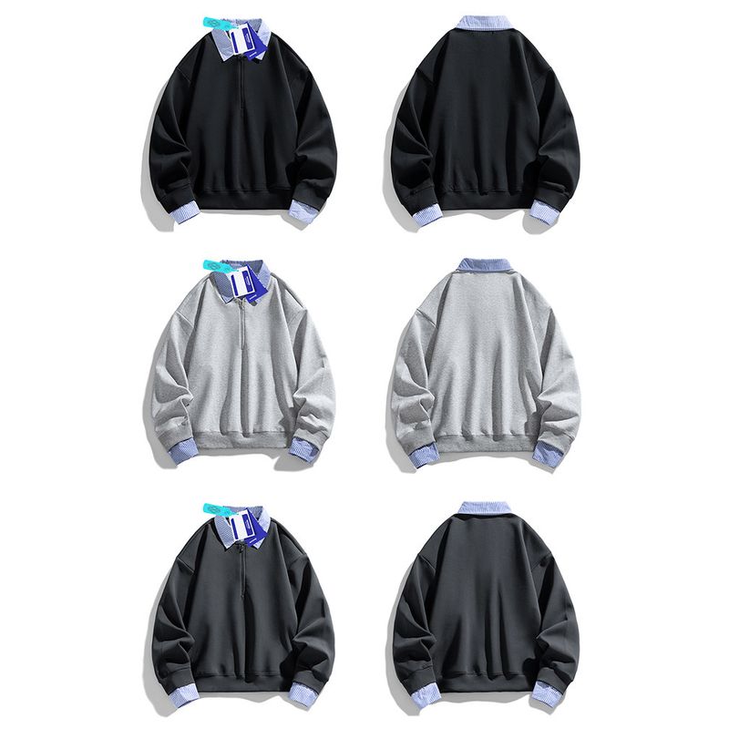 Wassup Retro Striped Patchwork Lapel Fake Two-Piece Sweatshirt for Women, Autumn Gray Loose Lazy Style American Top