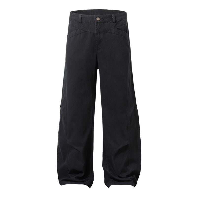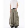 Kisko American Retro Distressed Three-Dimensional Deconstructed Army Green Scimitar Pants Unisex Design Loose Straight Pants