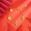 Вьетнамский набор из ожерелья-клевера с золотым покрытием, кольца и браслета с пятью цветами
