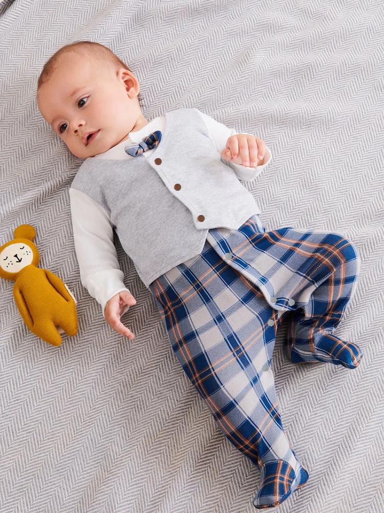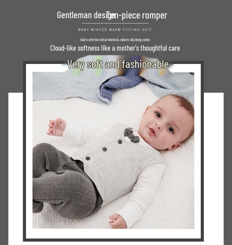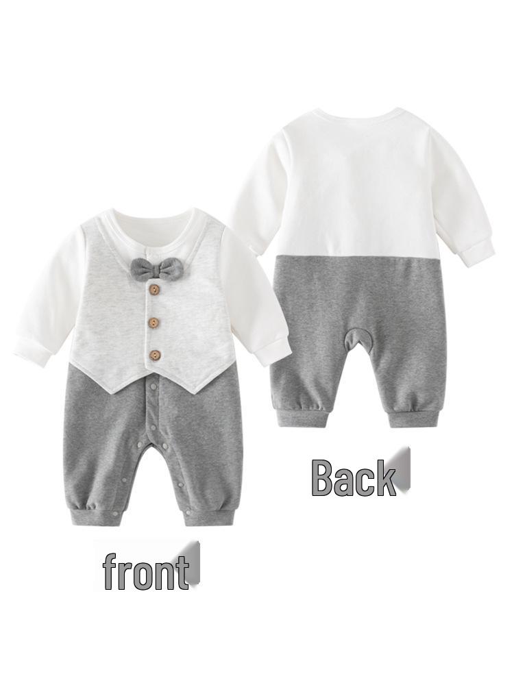 Детский боди «Четыре сезона»: Серый формальный ромпер с длинным рукавом для новорожденных
