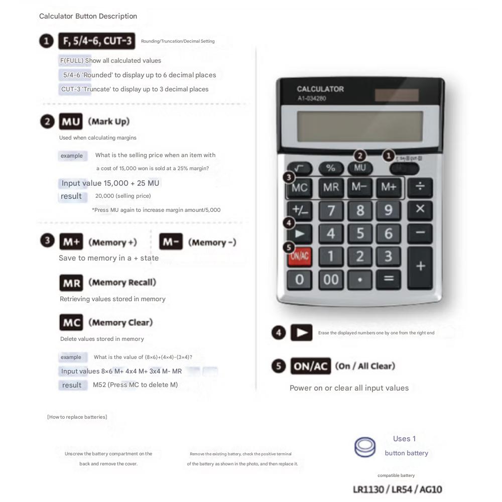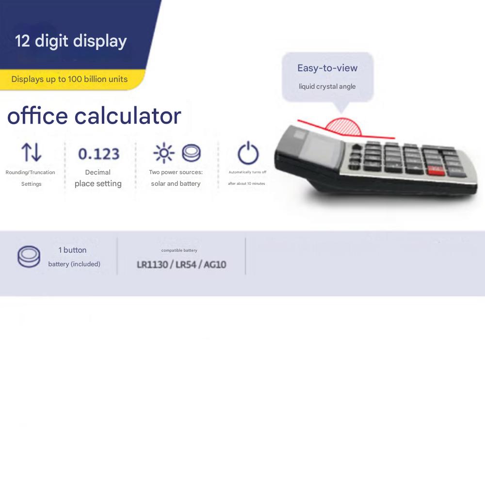 Aluminum Calculator (LR1130/LR54/AG10 / Solar Dual Power) 12 digits