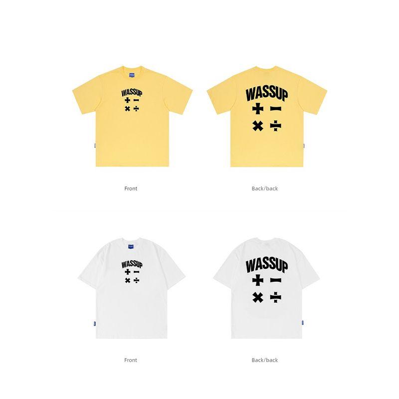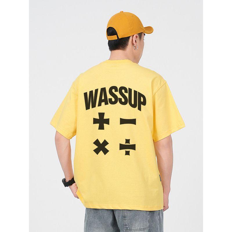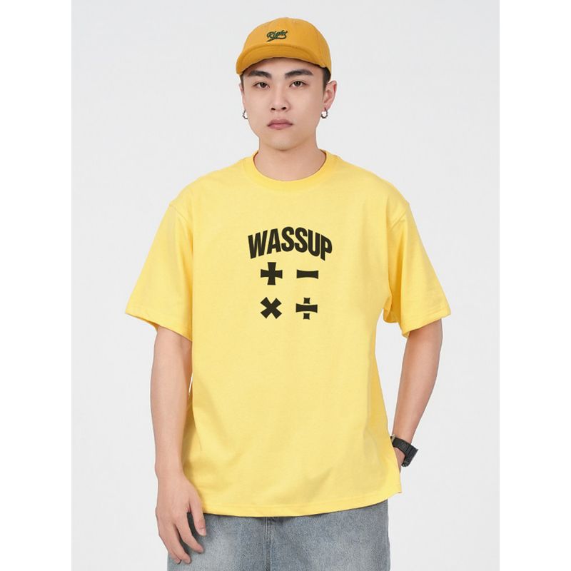 Wassup Trendy American Letter Print T-Shirt Short Sleeve Men's Summer Loose Casual Couple Round Neck Top