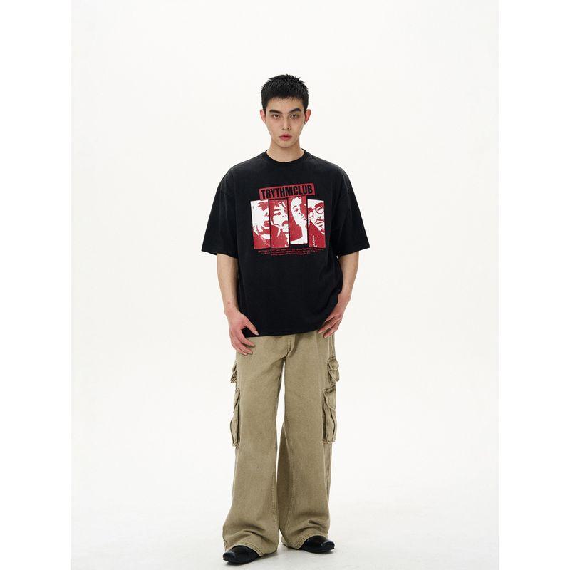 Kisko Design-Inspired American-Style Character Print Loose Round-Neck Short-Sleeve T-Shirt for Men and Women, Cool and Casual Summer Tee, Trendy