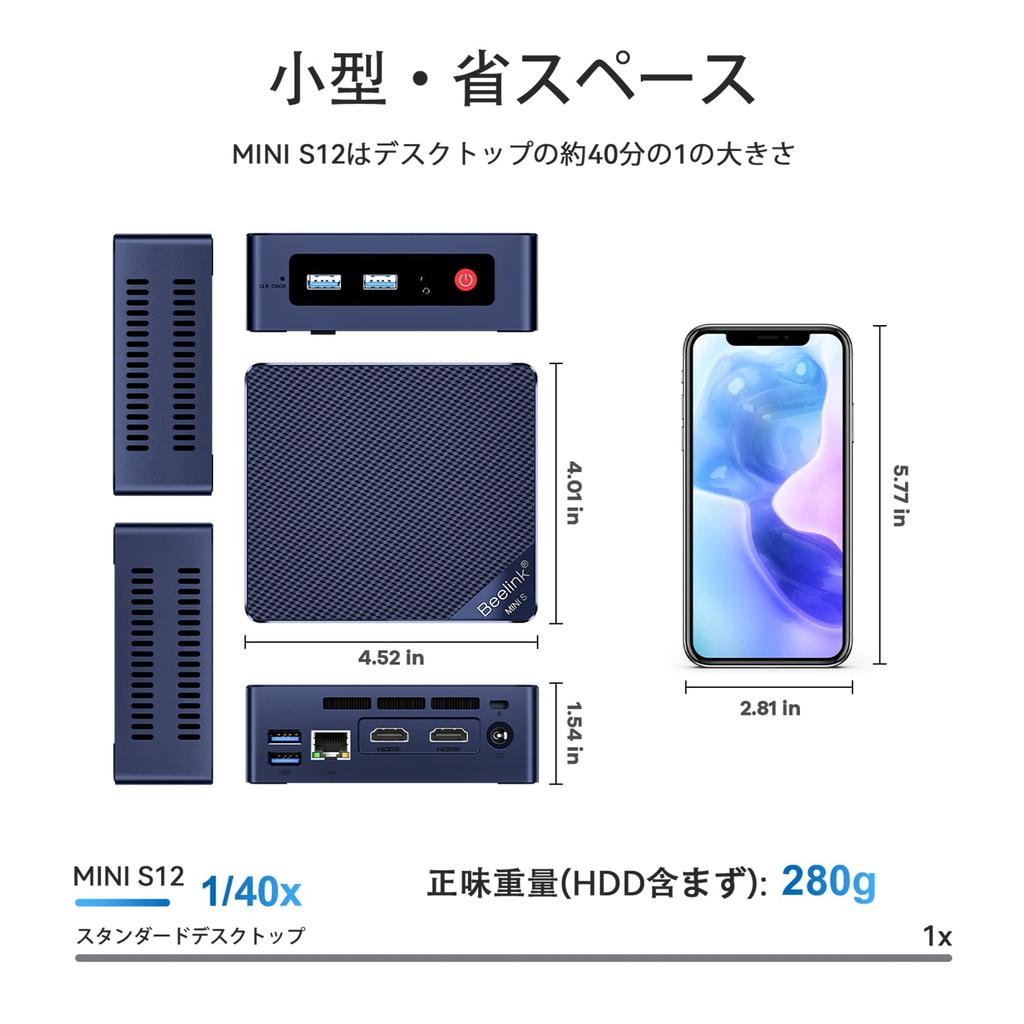Beelink MINI S12 Mini Intel Alder Up to 8GB 256GB Business Mini Desktop Dual WiFi BT PC, Lake-N95 Processor, 3.40GHz, RAM, SSD, PC, HDMI, 5, 4.2,
