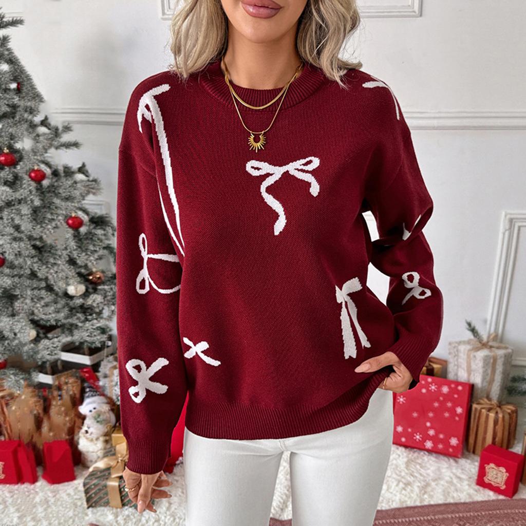 Женский свитер на День святого Валентина Модный милый бант Толстая вязка Пуловер Круглый вырез Свободный повседневный топ