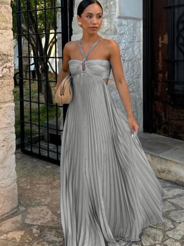 Женское платье макси без бретелей с оборками и вырезами по бокам на талии, многоярусное