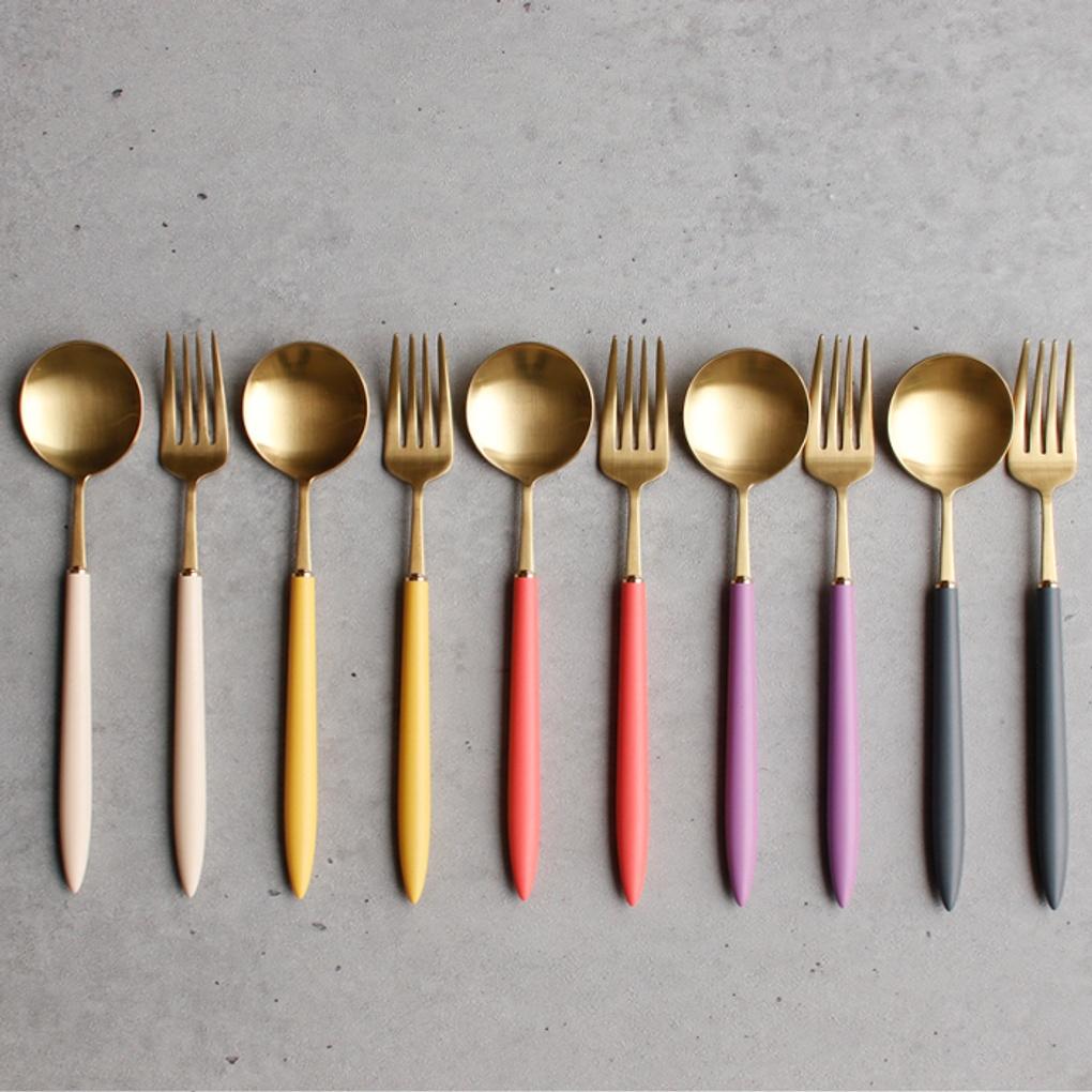 (Stella) Gold Dessert Spoon, Dessert Fork - 5 colors