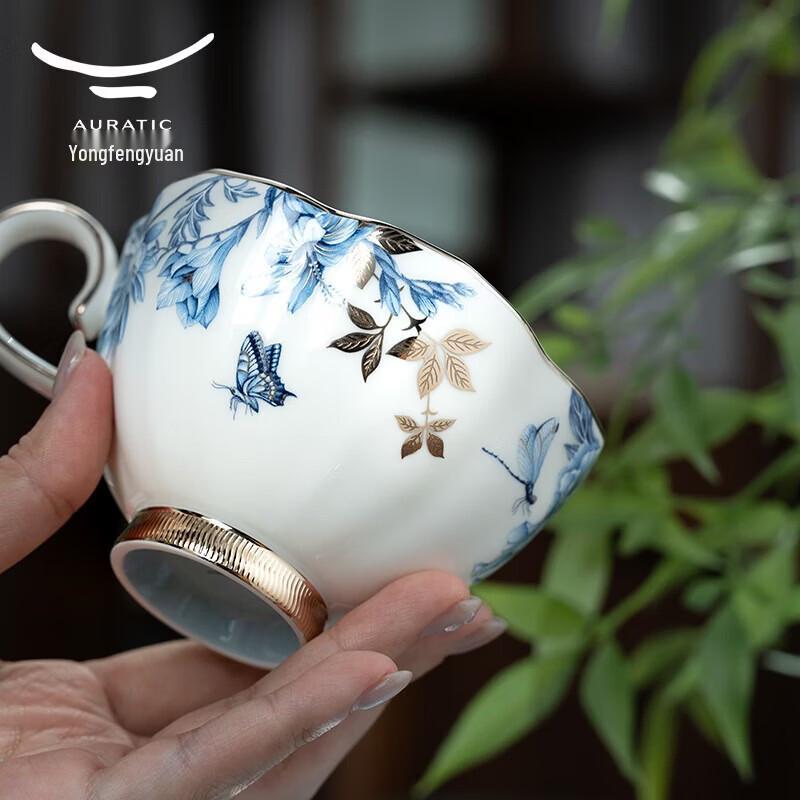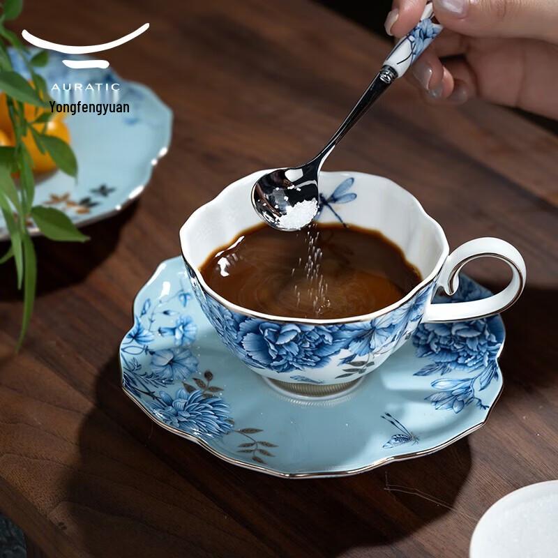 Ауратический платиновый синий и белый фарфоровый кофейный сервиз