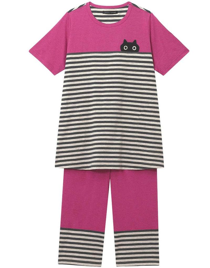 Wacoal RELAX SLEEP Atsuko Matano Short Cotton ATSUKO MATANO GY L & Pajamas, 5/8 Sleeve, Sleeve, 100% Jersey, 3/4 Length, HDT109,