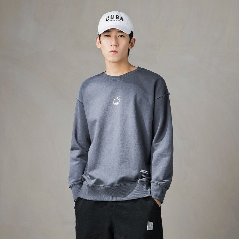 Wassup Fashion Brand Cartoon Smiley Face Fleece-lined round Neck Hoodie Boys Spring, Autumn and Winter All-Matching Couple Pullover Top Heavy