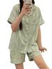 Низ — это шорты до середины бедра. По бокам подола есть разрезы для более расслабленного вида.. На талии есть милая оборка сверху. Его можно регулировать плоской резинкой и атласными лентами.