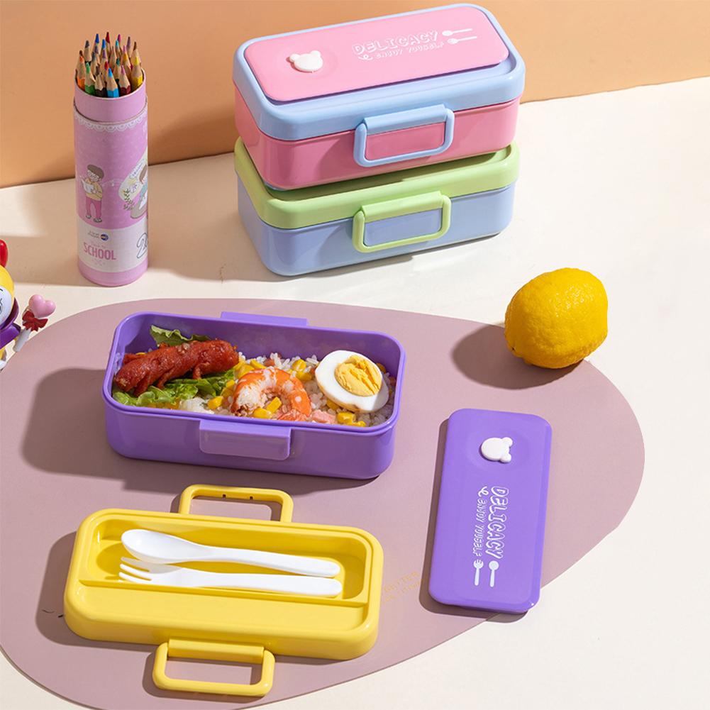Kids Microwaveable Cartoon Lunch Box For School Reusable Meal Preps Containers With Fork Spoon For School Lunch