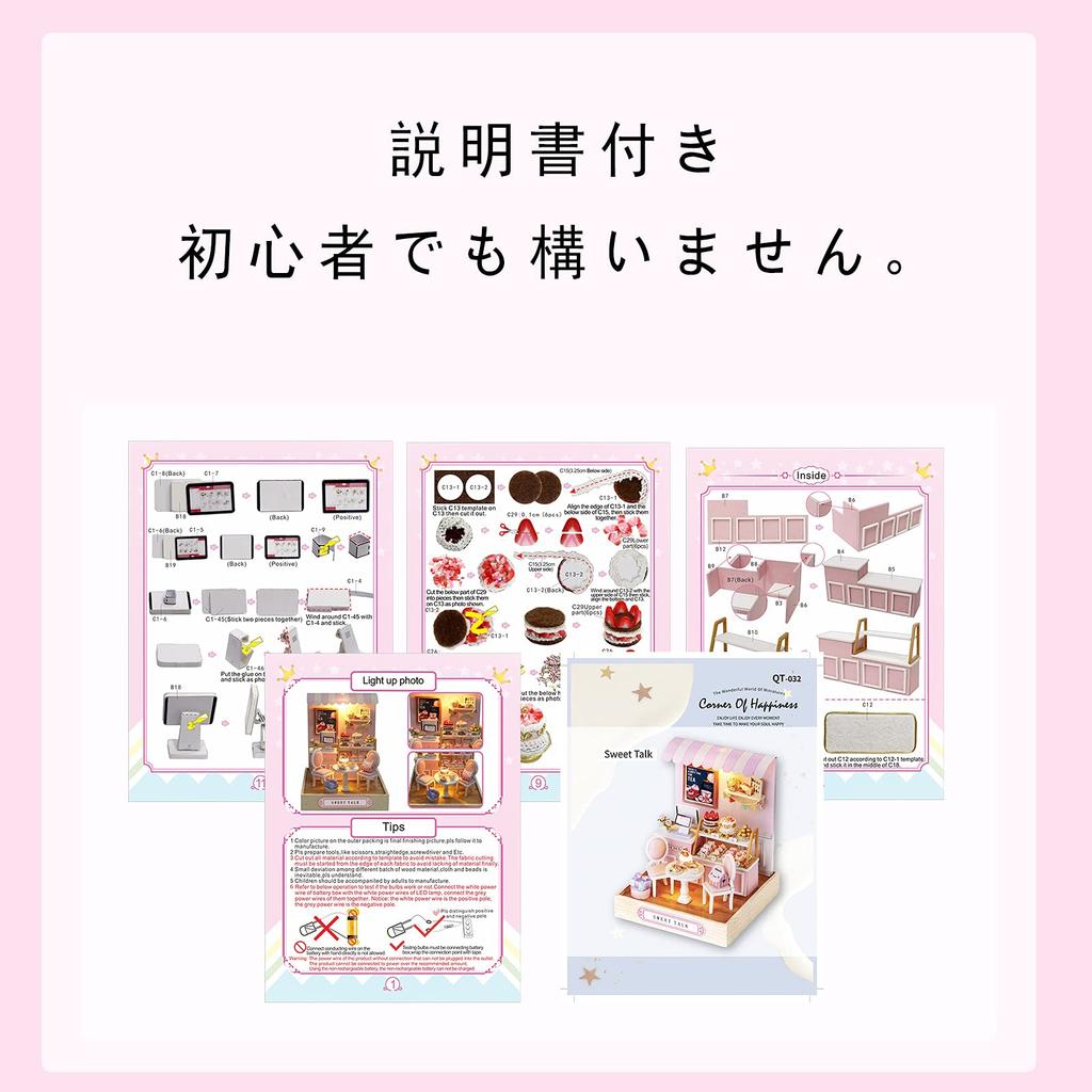 🧁【Миниатюрный кукольный домик на тему "Сладкие разговоры", набор для самостоятельной сборки】Этот продукт включает в себя пакет материалов, но не является готовым изделием. Вы должны собрать его самостоятельно согласно инструкции. 【Содержимое набора】Все материалы, светодиодная подсветка (В комплект поставки входит батарейный отсек, но без батареек.), и акриловая пылезащитная крышка. Если после получения товара каких-либо деталей не хватает, мы можем их переслать.