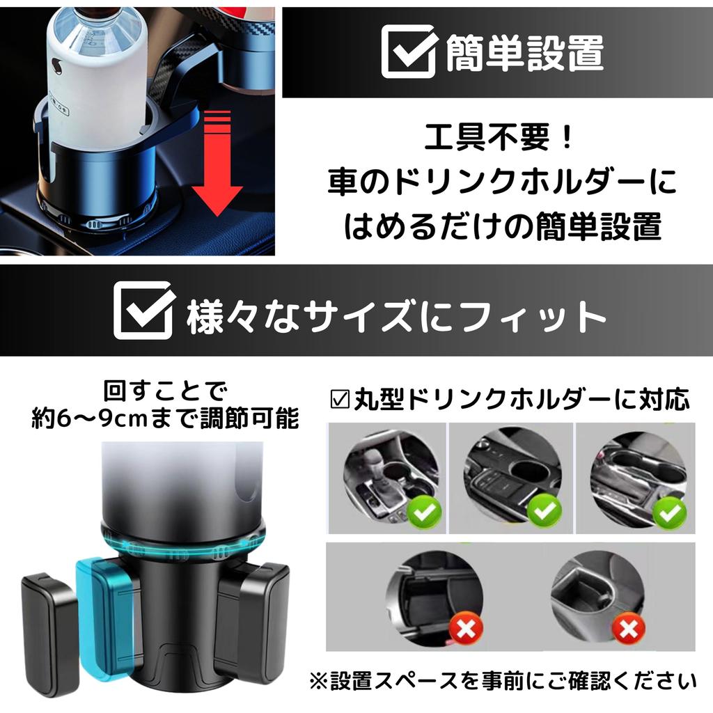 [Rotating Cup Holder for Wide Compatibility] This car cup holder accommodates bottles and cups with diameters of approximately 6-9cm. The rotating adjuster allows it to fit a variety of sizes. *Please check the installation space in advance.