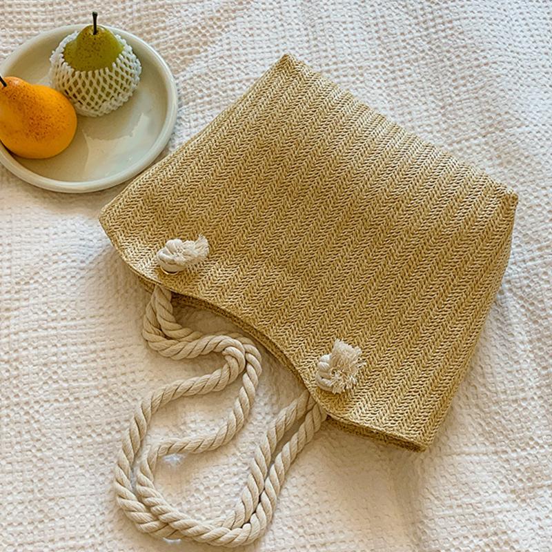 Женская пляжная винтажная плетеная сумка ручной работы, соломенные сумки для покупок, богемная летняя дорожная сумка для отпуска, повседневная сумка-тоут KTB