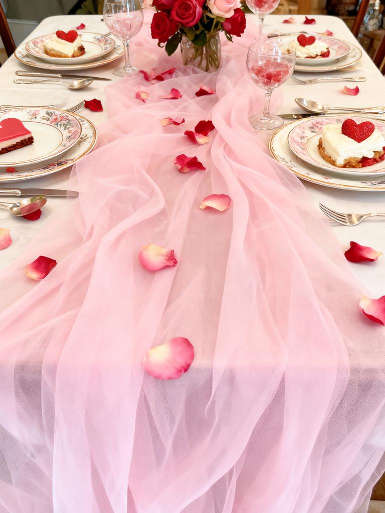 Розовый тюлевый дорожка на стол - Прозрачная шифоновая скатерть для Дня святого Валентина, Свадебной годовщины, Романтического ужина, Вечеринки, Домашнего декора
