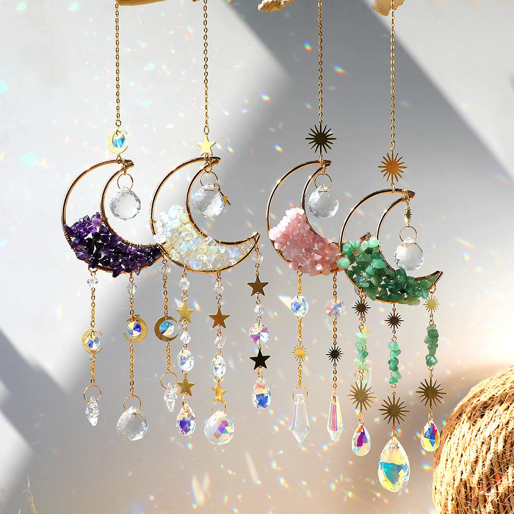 Ловец снов, ловец солнца, кристалл, ловец солнца, комнатный, оконный, призматический, шар, луна, радуга, колокольчики, подвесное украшение для автомобиля, сад, подарок