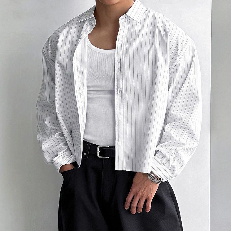 Cross-Border Amazon 2025 Autumn New European and American Men's Long-Sleeved Striped Shirt Casual Versatile Base Shirt