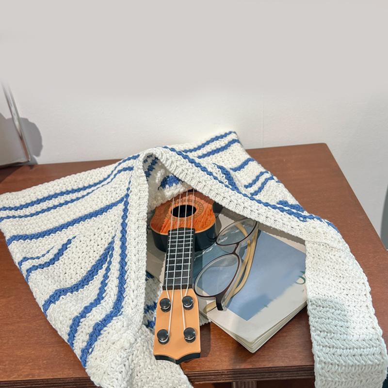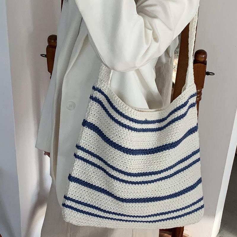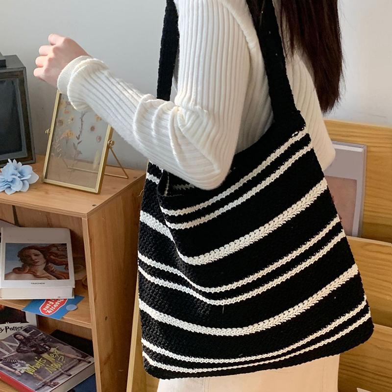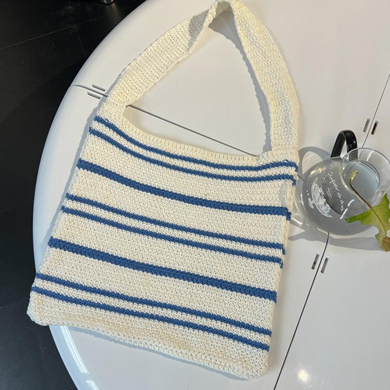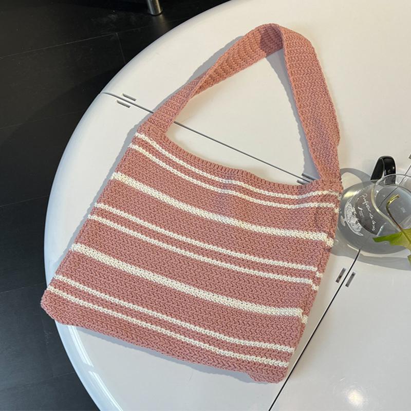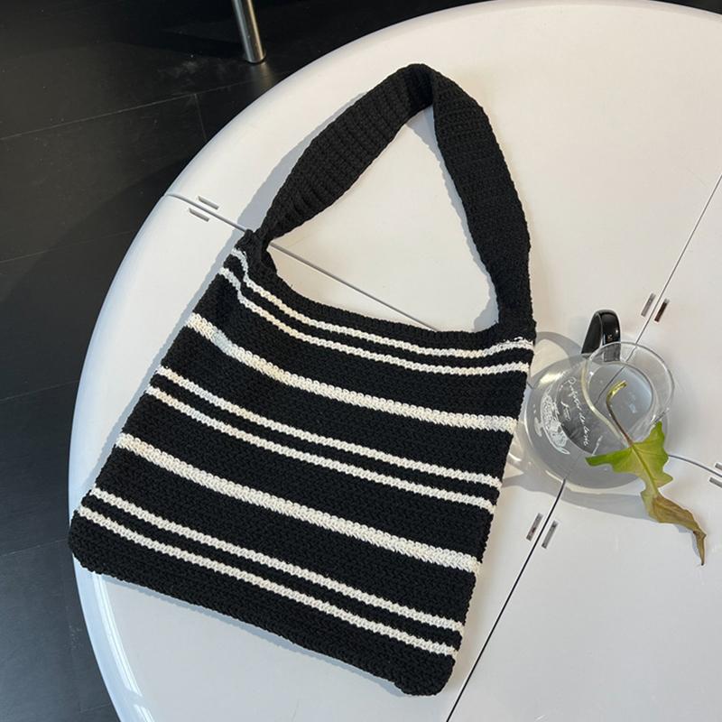 Женские вязаные сумки ручной работы, плетеная сумка через плечо с ручкой, тоут, сумка для покупок, полосатая шерстяная сумка, сумка-клатч, сумка под мышку, сумка, связанная крючком KTB