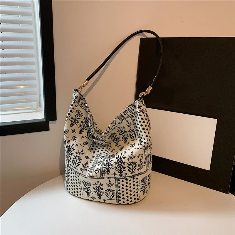 Новая модная сумка-тоут из цветочной ткани большой вместимости, нишевый дизайн и универсальная сумка через плечо, сумки кроссбоди для женщин KTB