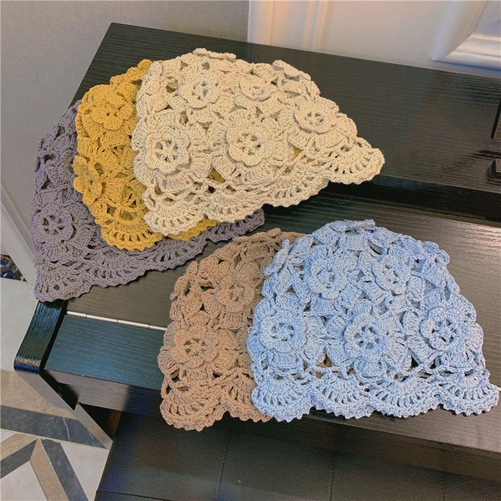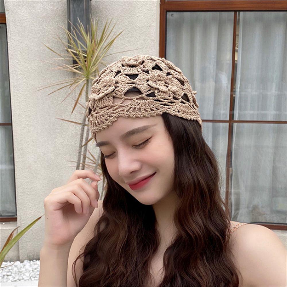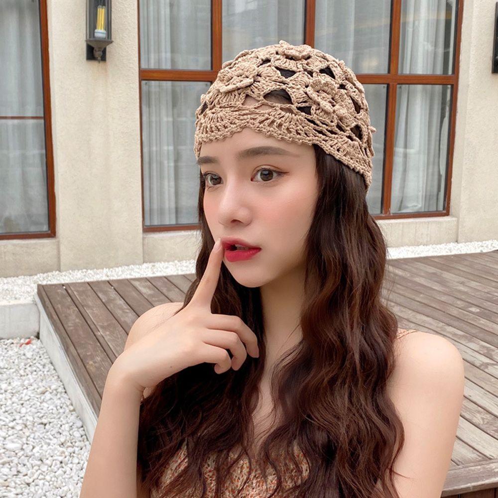 Шапка-косынка Ажурный цветок Модный дизайн Женская шапка Корейский стиль Шапка Шерстяная вязка Ручная вязка