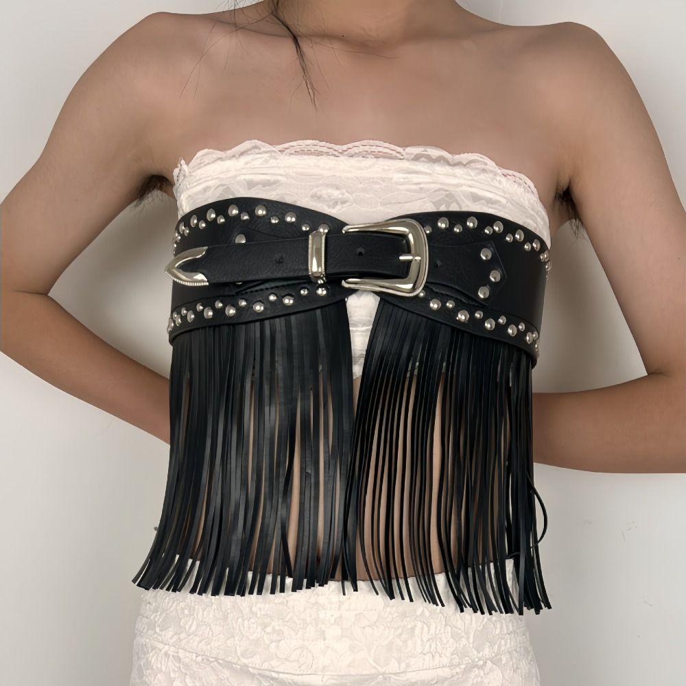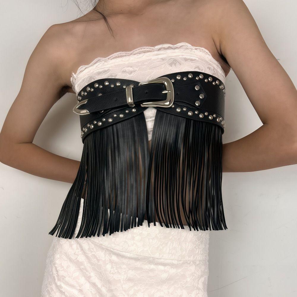 Пряный ремень с заклепками в стиле панк, кисточки из искусственной кожи, простые пояса для украшения юбки, женский/девичий