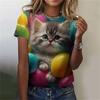 Fashion Women's T-shirt 3D Printed Kawaii Cat Pattern Short Sleeved Round Neck Top Summer Outdoor Casual Street Simple Clothing 4126 KTB