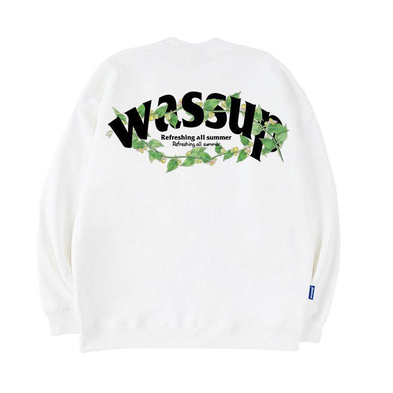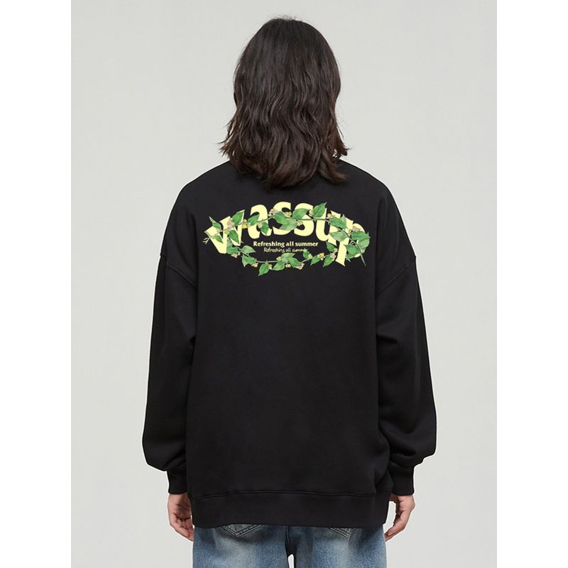 Wassup Tree Vine Crown American Style Heavyweight Crewneck Sweatshirt for Men, Autumn/Winter 2025 New Fleece-Lined Loose Trendy Brand Top