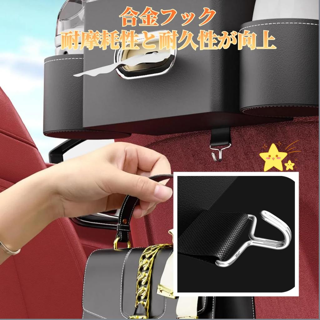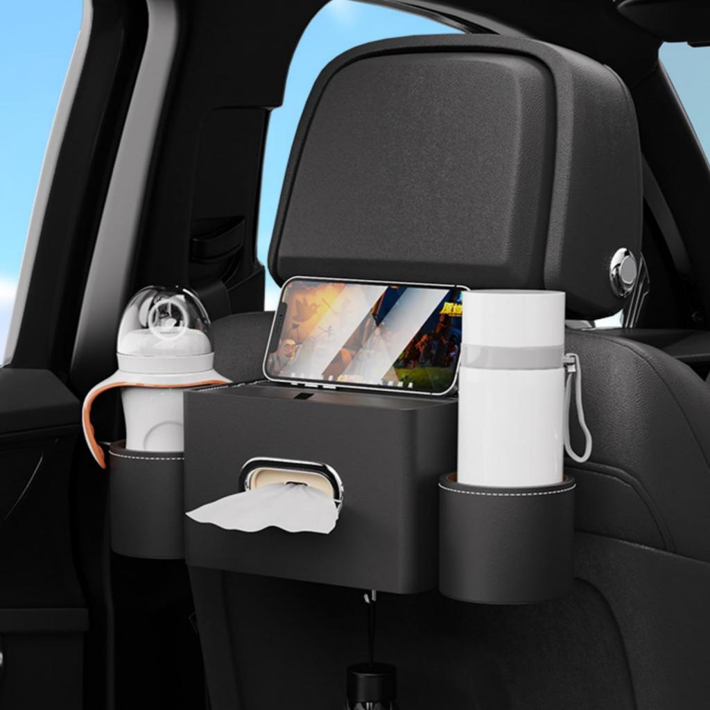 [Multifunctional Car Seat Storage Box]: This multifunctional car seat storage box keeps scattered items organized during travel. It stores tissues, cups, baby bottles, and hanging bags for easy access. It's compatible with all vehicles and seats. The storage box and hook design maximizes space and allows you to store items in the box or hang them on bags, shopping bags, trash bags, umbrellas, and more, making travel more convenient.