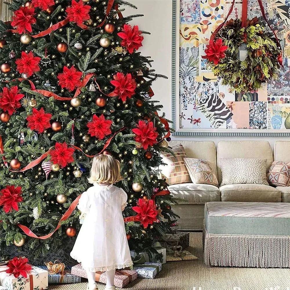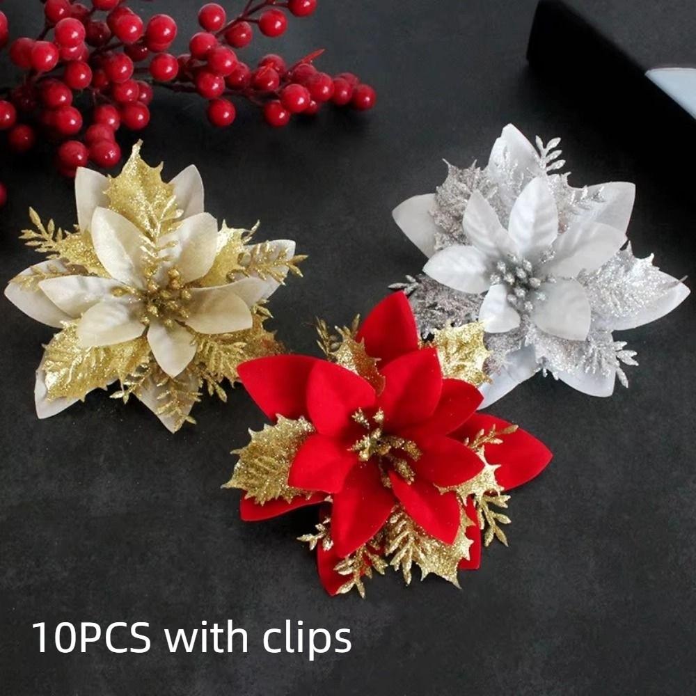 10 шт. Имитация Блестящие Рождественские Украшения на Елку с Клипсами Рождественские Искусственные Цветы Подвеска Праздничный
