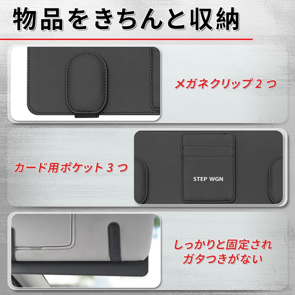 [Special Design] This car sunglasses holder is a specially designed accessory for drivers. Crafted from high-quality PU leather, it features a long design, two eyeglass clips, and three card slots. It features a special STEP WGN logo and is compatible with the Step WGN. Its ingenious design and excellent value for money significantly improve driving convenience and safety.