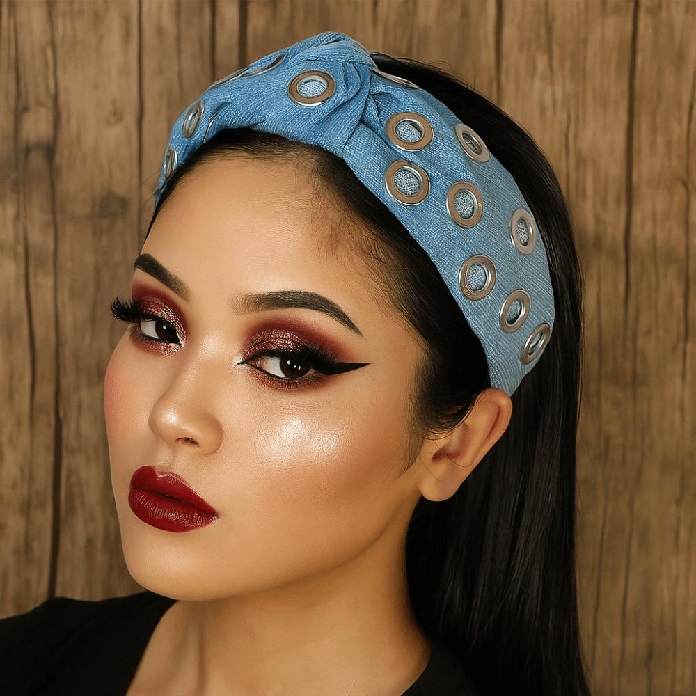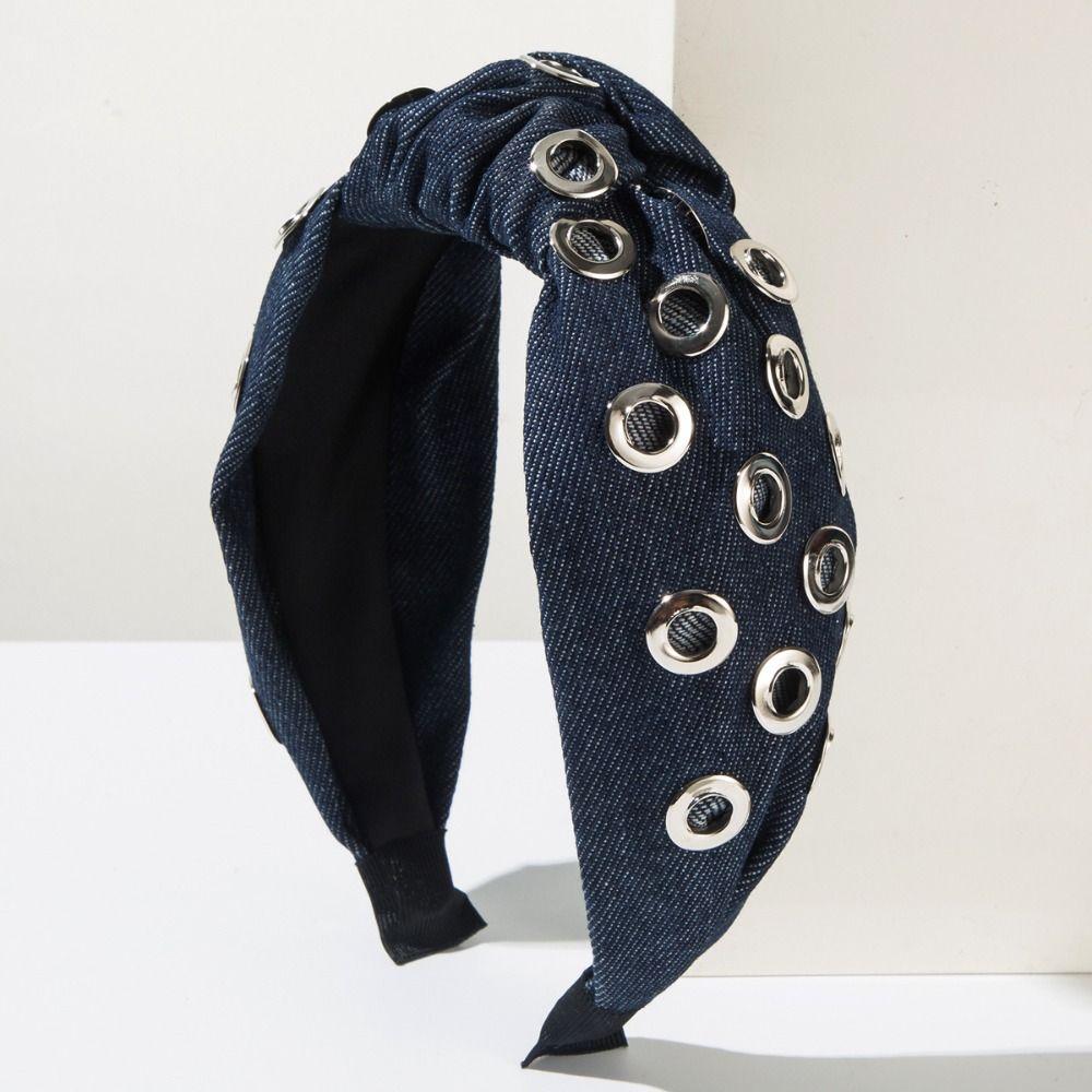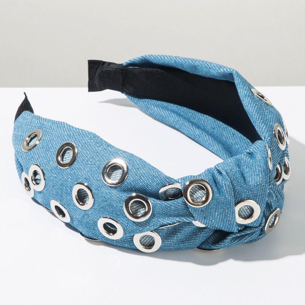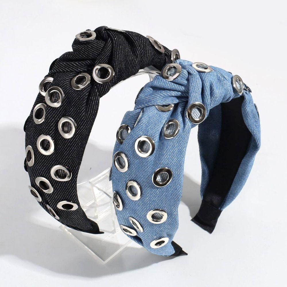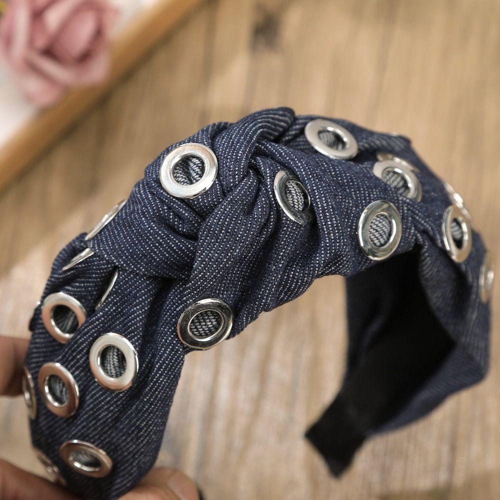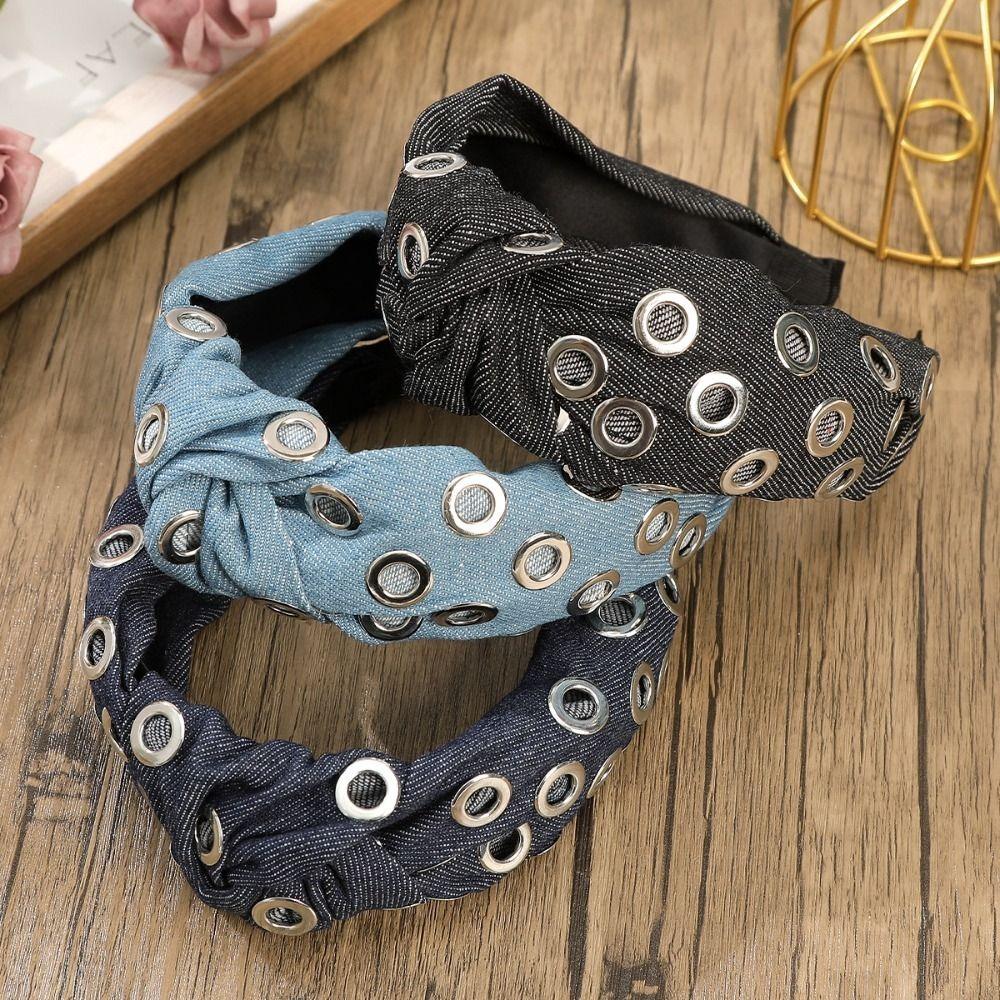 Широкая панк-повязка на волосы Металлическая полая повязка с люверсами Бандана Джинсовая повязка Женская
