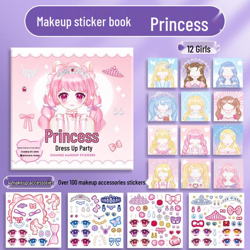 Книга наклеек «Принцессы: одевалки своими руками»: Обучающий макияж и мультяшное украшение для девочек