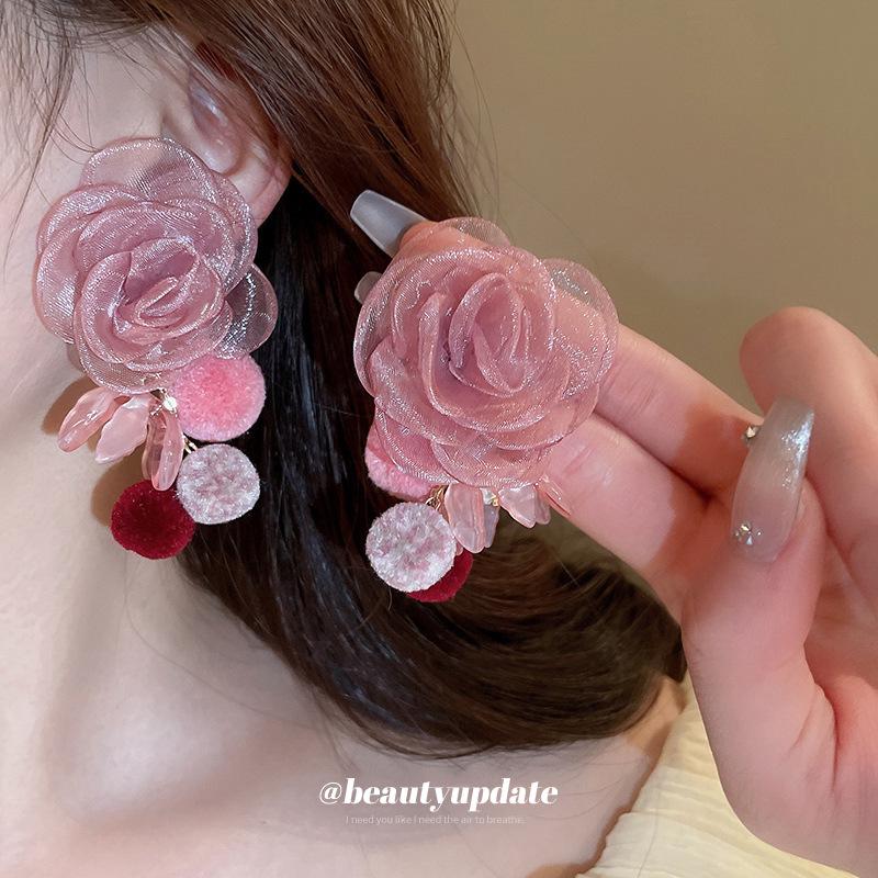 Корейские серьги-цветы из сладкого жемчуга и смолы: Универсальный, девичий дизайн в виде сердца для повседневной моды