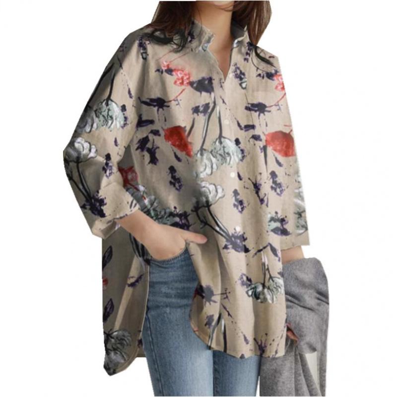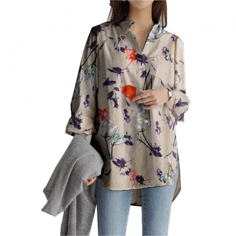 Женская рубашка с длинным рукавом, свободного кроя, больших размеров, повседневная, с нерегулярным принтом